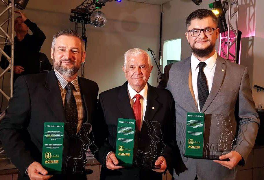 Neste ultima dia 27, o Rotary Club de Nova Esperança esteve presente no Jantar de Comemoração de 60 anos da ACINE, Associação Comercial e Empresarial de Nova Esperança, onde foram homenagiados os ex presidentes da entidade, são 18 homens de garra e dedicação, que se colocaram a disposição do crescimento da nossa cidade. Entre eles tivemos 3 companheiros que foram homenagiados, o primeiro é o Gov. Rubens Costa Monteiro que foi representando seu Pai Joaquim Costa Monteiro, que o foi o primeiro presidente da ACINE entre os anos de 1959 e 1961, depois o Co. Mauro Cerezuela presidiu entre 2012 e 2014, e o mais recente Co. Rodrigo Streleski Picoli presidiu entre 2016 e 2018.